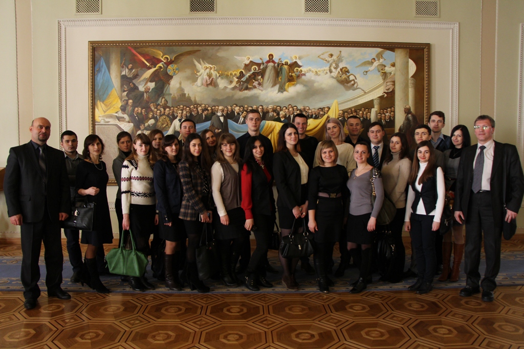 Далі студентів очікувала екскурсія до будинку Верховної ради України. Молоді люди відвідали місця, де приймалися ключові для незалежної України рішення та відбувалися зустрічі на найвищому рівні – це сесійна та конференц-зала. Студенти дізналися про історію самої будівлі, депутатський склад минулих та сучасного скликань, порядок проведення сесій, функціонування системи «Рада» та про те, яким чином пересічні українці можуть бути присутніми на сесії парламенту.