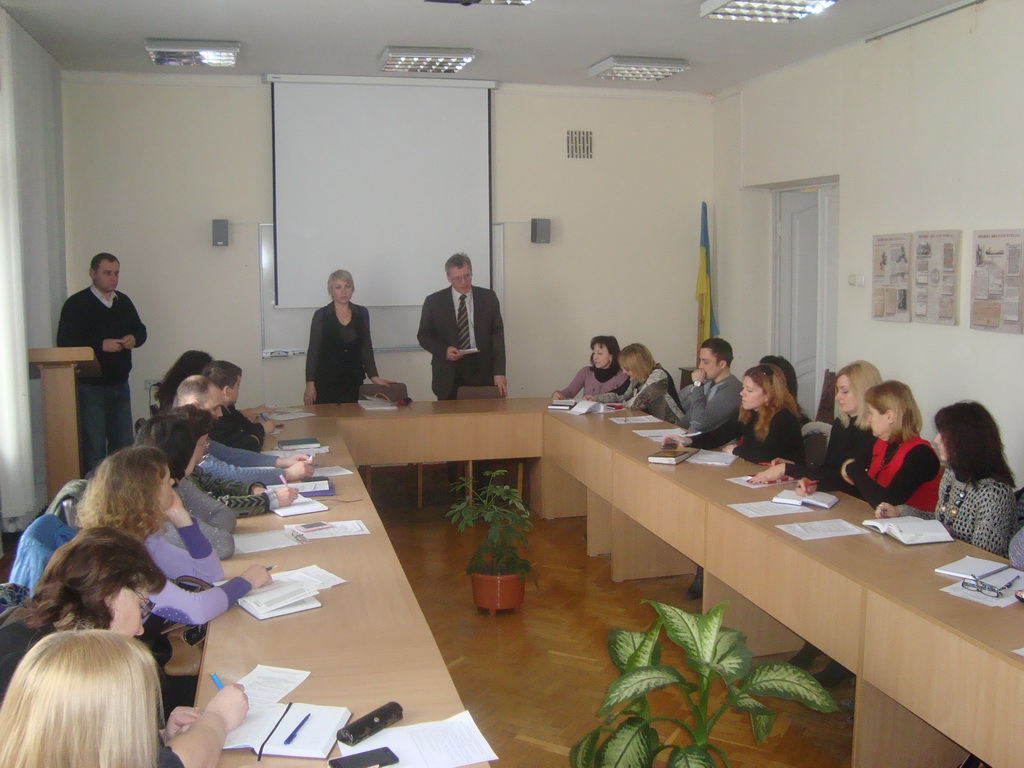 Одноденний семінар для державних службовців, посадових осіб місцевого самоврядування, задіяних в розробці і моніторингу виконання цільових програм проходить в Центрі перепідготовці та підвищення кваліфікації кадрів 30 березня 2016 р. Участь у відкритті заходу взяли заступник директора Департаменту економічного розвитку ОДА, кандидат економічних наук Олександра Хомик та директор Центру, кандидат історичних наук Володимир Бойко.