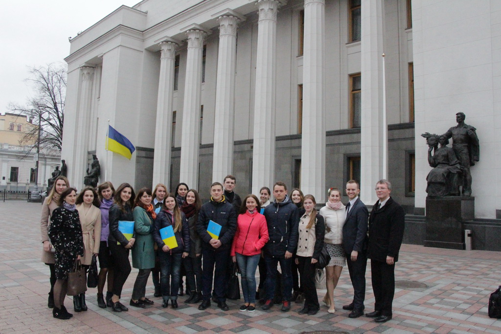 Наостанок студенти побували на екскурсії в будинку Верховної ради України. Прогулюючись кулуарами парламенту, вони мали нагоду почути цікаву розповідь про історію самої будівлі та побачити місця, де приймалися ключові для незалежної України рішення та ухвалюється її сучасне законодавство. Безпосередньо в сесійній залі студенти дізналися про те, як змінювався інтер’єр приміщення, депутатський склад Верховної ради; за яким порядком розміщуються представники депутатських фракцій, проводяться сесії, функціонує система «Рада» тощо. Також студентам розповіли про те, як звичайні громадяни можуть бути присутніми на сесії парламенту.