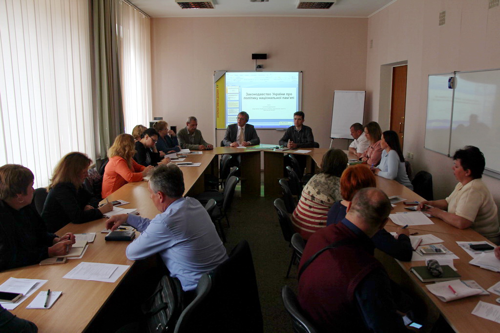 Присутні ознайомилися з положеннями законодавства України про політику національної пам’яті; заходами державної політики щодо увічнення пам’яті борців за незалежність України та захисників України, відзначення 100-річчя подій Української революції 1917 – 1921 років та пам’яті жертв Голодоморів в контексті національно-патріотичного виховання.