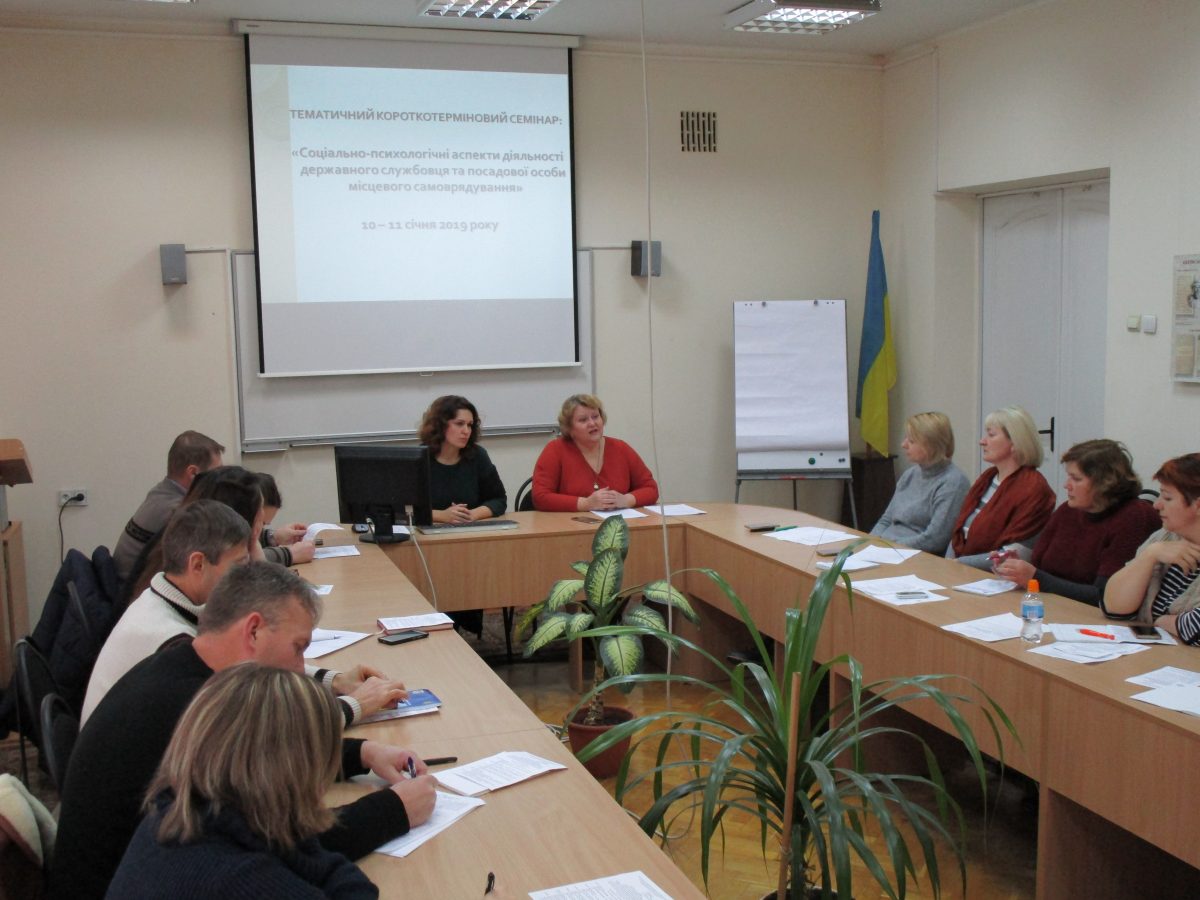 Саме про ці та інші моменти в повсякденному спілкуванні працівників органів влади йдеться під час семінару «Соціально-психологічні аспекти діяльності державного службовця та посадової особи місцевого самоврядування», що проходить в Центрі перепідготовки та підвищення кваліфікації кадрів з 10 по 11 січня. До участі в навчанні запрошені спеціалісти апарату, структурних підрозділів облдержадміністрації, райдержадміністрацій, обласної ради та об’єднаних територіальних громад.