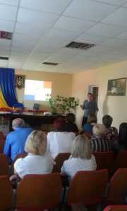 Учасники тренінгу разом з головним спеціалістом відділу з питань молоді та організації оздоровлення дітей Департаменту сім’ї, молоді та спорту облдержадміністрації Яланською Анастасією Павлівною розглянули практичні аспекти здійснення державної молодіжної політики в територіальній громаді. Зокрема, акцентували увагу на необхідності створення молодіжних громадських організацій з метою залучення дітей та молоді до громадської діяльності, організації дозвілля як запоруки формування здорового і активного способу життя. Представник Департаменту поінформувала слухачів про оголошення і проведення обласних, загальнодержавних та міжнародних конкурсів, тренінгів, інших соціальних, просвітницьких, та культурних заходів, про переваги таких заходів для розвитку молодіжних ініціатив, про умови участі та отримання фінансування молодіжних проектів.