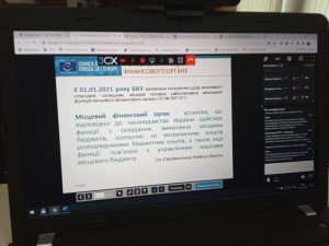 юридичних осіб публічного права та передачі пов’язаного з ними майна. Вона пояснила різницю в повноваженнях окремого фінансового органу та бухгалтерської служби, розповіла про особливості організації бюджетного процесу на 2021 рік,  виконання окремих бюджетів територіальних громад, управління об’єктами комунальної власності в період реорганізації. Експерт окреслила порядок створення та діяльності інвентаризаційних комісій, передачі майна від обласних та районних рад у комунальну власність громад.